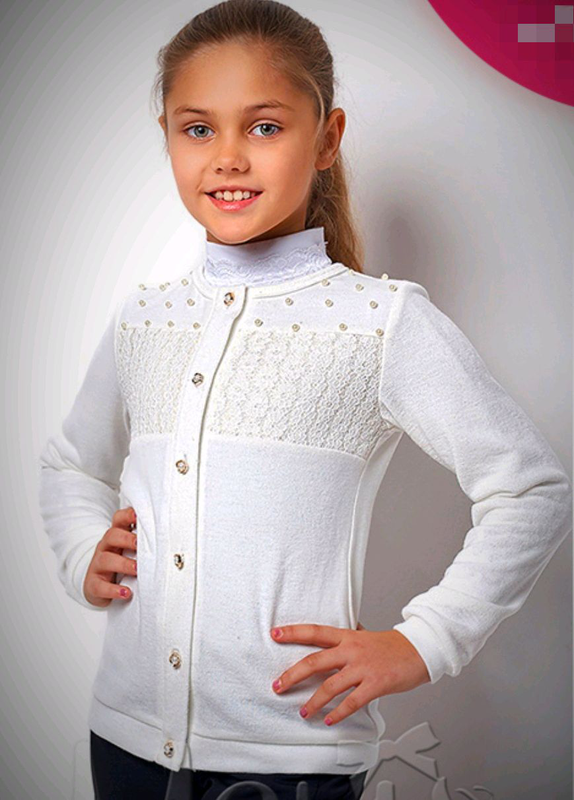 Виробник: Українське Тип одягу: Кофти Розмір одягу: 10/140 Ошатна кофта для дівчинки. Стильна дитяча кофта застібається на ґудзики, прикрашена декоративними перлами. Країна-виробник Україна. Фірма виробник Mevis Якість Відмінна 👍 В реальності кофта більш молочного кольору. (Між білим і молочним) виглядає дуже ошатно і стильно! Відмінно підійде як на свято так і для школи. Розміри в наявності: 122,128, 134, 140, 146 🛑 При замовленні товару обов'язково вказуйте потрібний розмір!🛑 Є в наявності остання ростовка на опт! Пишіть.