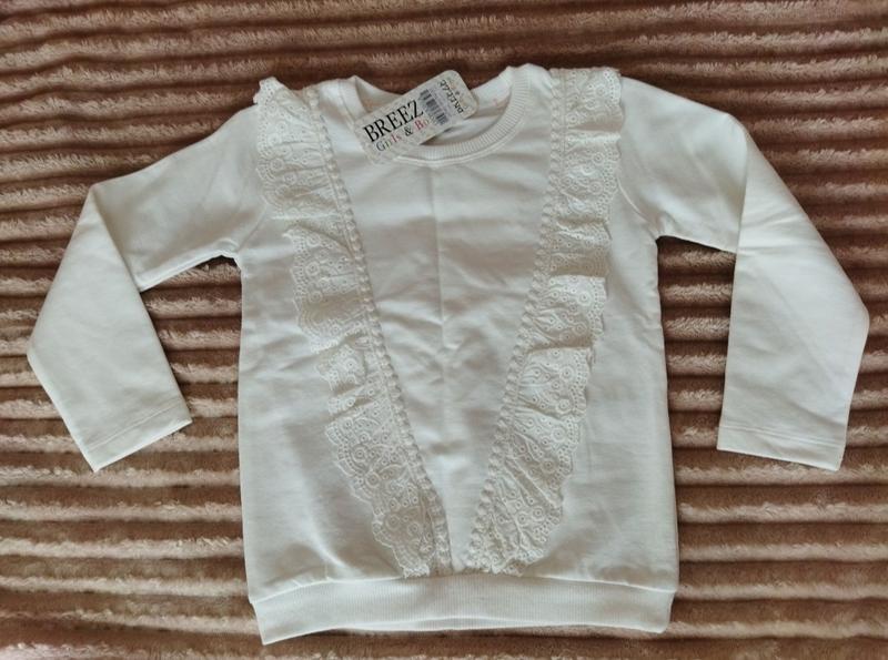 Кофтинка на девочку бело-молочного цвета на рост 104 турецкого производства Breeze. Склад 95% бавовна, 5% еластан. Замеры: длина рукава 39см, длина кофточки 43 см, ширина 34см.