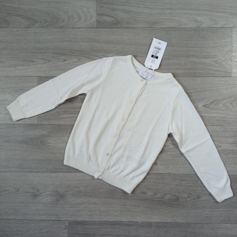 Тонка в'язана кофтинка молочно білого кольору, на гудзиках Cool Club. Розмір 110. Матеріал 50% бавовна, 50% акрил. Заміри розмір 110: Рукав від плеча 40 см, Рукав від пахви 29 см, Напівобхват грудей 31 см, Довжина 41 см.