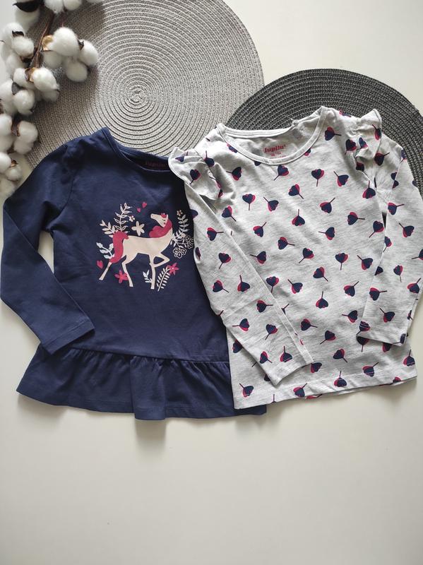 Лонгслив на девочку lupilu. ✅98/104(2-4роки) Довжина:42см.ПОГ:32см.рукав:38см.плече:5см. ✅110/116(4-6роков) осталась серая Довжина:46см.ПОГ:33см.рукав:41см.плече:6см. (завышелся серый) 🏷️-250грн.набор из 2 шт.
