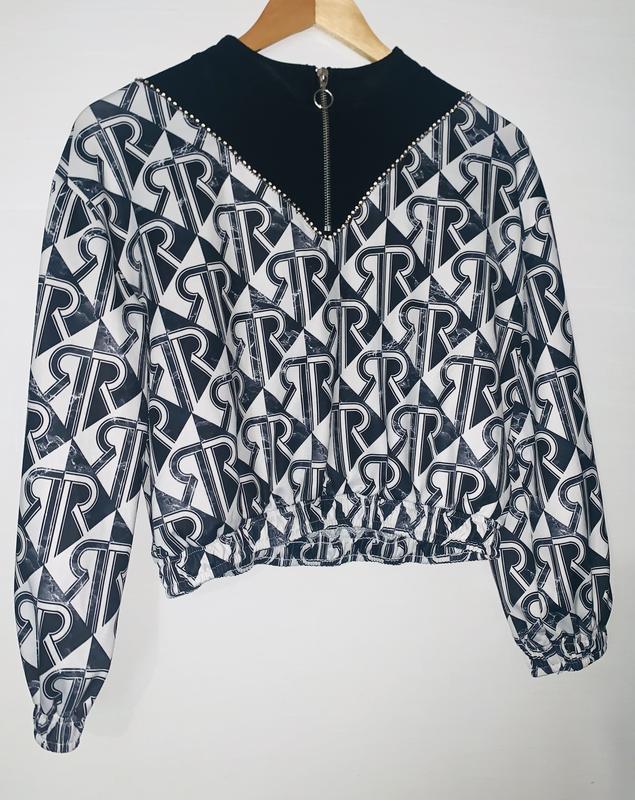 Очень привлекательная кофточка,воротник на молнии, вдоль воротничка белые камушки, по низу и рукава на резинке,в очень красивом состоянии