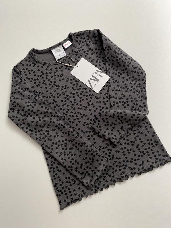 Серая кофта/водолазка в рубчик принт сердечки на девочку 4-5 лет зара/zara