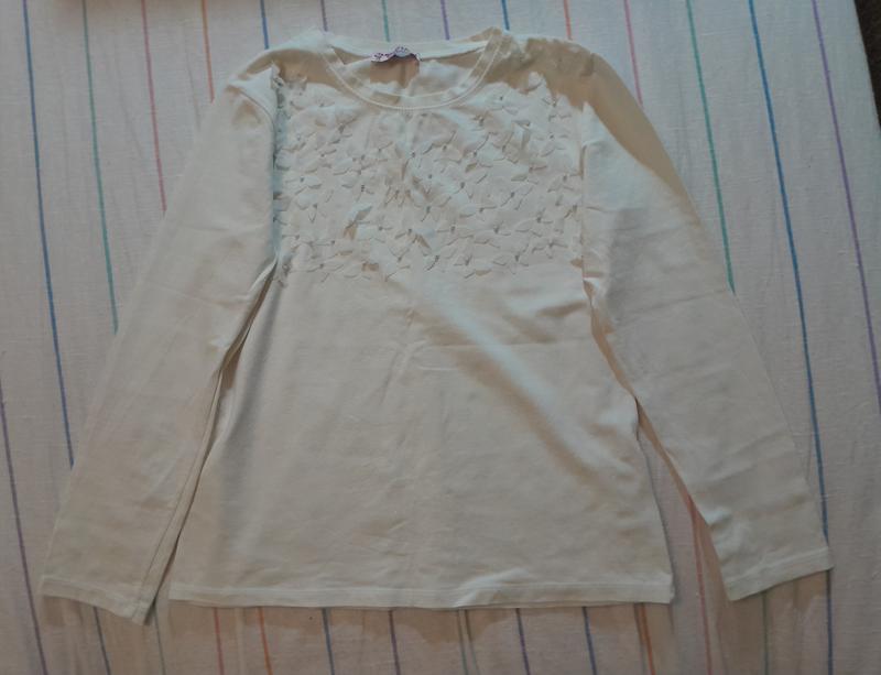 - Длинный лист для детей - Цвет: белый с нашивкой в виде бабочек - Размер 164 см - Полуобхват талии: 38 см, полуобхват груди: 38 см, длина рукава: 48 см Длина: 52 см - Хлопок 95% Ликра 5%