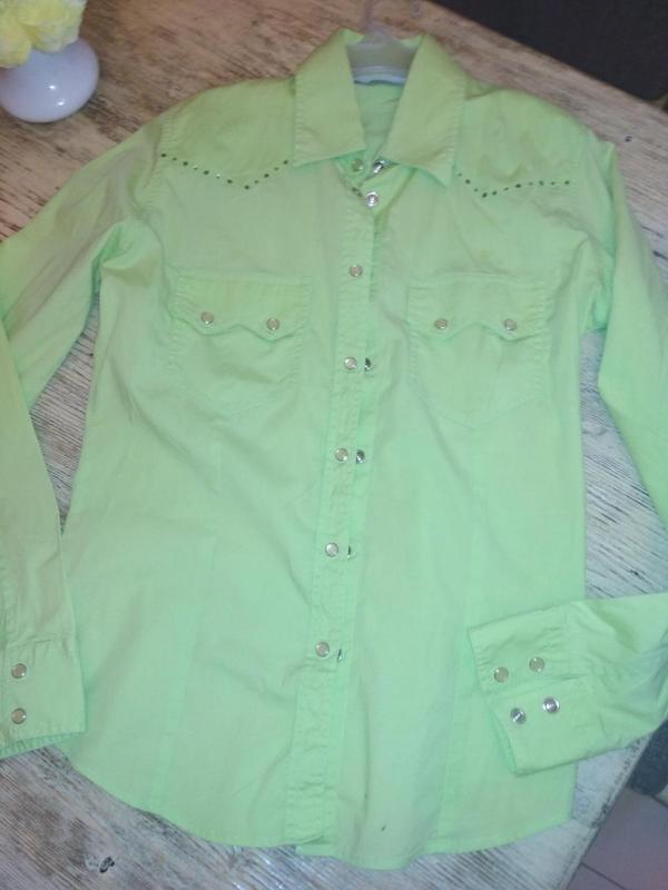 Рубашка з дуже тонкого катону. Салатова зі стразами для дівчинки 9-10 років.