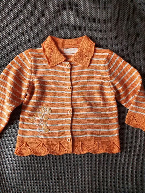 Оранжевый насыщенный цвет. Мелкая вязка, болееовика на пуговицах. Высота по спине - 36 см., длина рукава - 30 см., от плеча до плеча - 29 см.,ПОГ - 34 см. Без дефектов.За дополнительной информацией соответствуйте в приват.