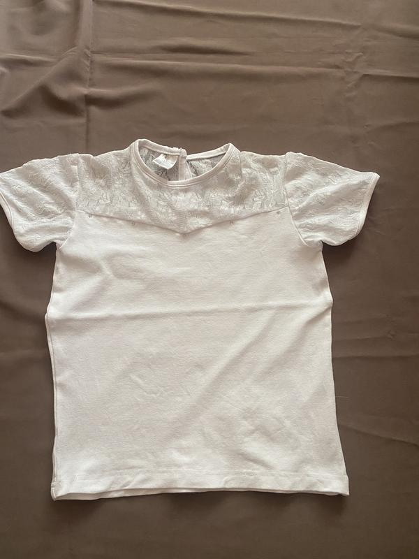 Кофта на дівчинку Ззаду застібається на ґудзик. Вверх мереживо, низ трикотаж. Стан: новий, без паперової бірки (не ношена, але була випрана один раз, бо запилилась в магазині) Розмір: на 8 років (зріст 128 см, але краще орієнтуйтеся по замірах) Заміри не в розтягнутому стані: півобʼєм по груді 34 см; довжина 40 см; довжина рукава 13 см; плече 9 см; Тканина: віскоза Колір: білий
