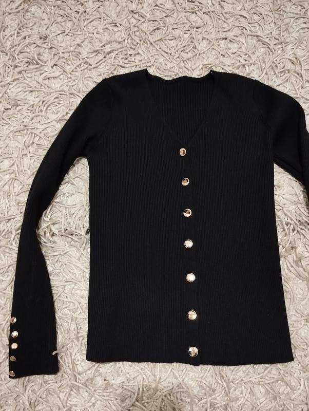 кофта в рубчик, на ґудзиках, які з них затерті, останні два фото. Плечі 32 см, рукав 55 см,ПО під руками 36 см, довжина 52 см.