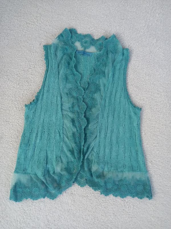 полу прозрачная, состояние хорошее. полуобхват груди 38см, длина 41см