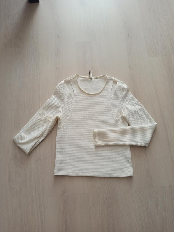 Длина кофты 49,5 длина рукав 58,5 см фирма страдивариус размер S на фото засвечивает пятнами но кофта чисто белая бес дефектов и желтизны