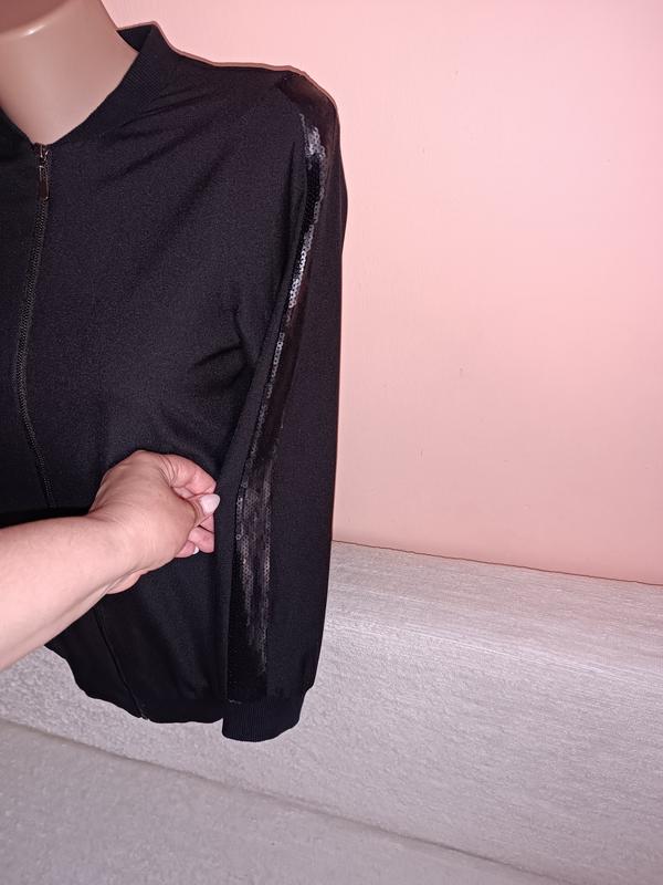 Красивая удлиненная кофта бомбер на девочку 13р. Цвет черный, на рукавах нашиты пайетки, есть карманы. Замеры на фото.Песлание Новая почта, Укрпочтта.