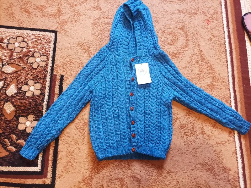 Нова в'язана кофта, по бірьці 4-5 років, але буде і на старших діток, довжина 44 см, рукав 47 см, ширина 33 см, дуже добре тягнеться.Колір ближче як на фото 2