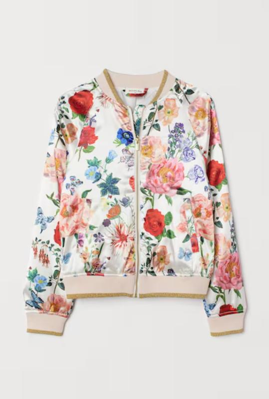 Красивая кофта, ветровка H&M с цветочным принтом, на девочку 9-10 лет. Высота 49 см, пог 40 см, рукав от воротничка 62 см.