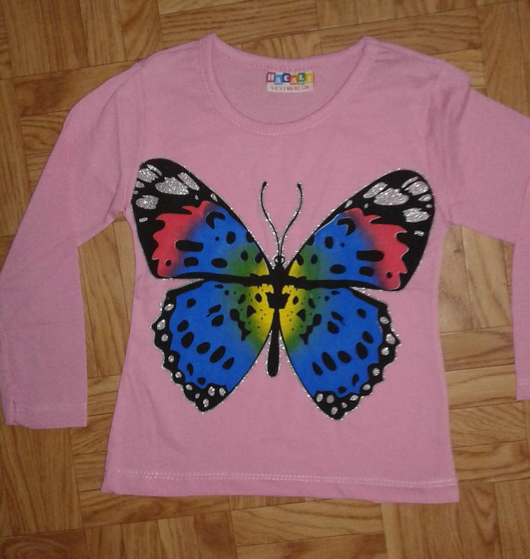 Гарний реглан із метеликом Полотно: трикотаж стрейч Виробник Туреччина. Заміри 1-2 — довжина виробу 37 см, ширина виробу в грудях 27 см, довжина рукава від плеча 32 см 3-4 — довжина виробу 40 см, ширина виробу в грудях 28 см, довжина рукава від плеча 34 см
