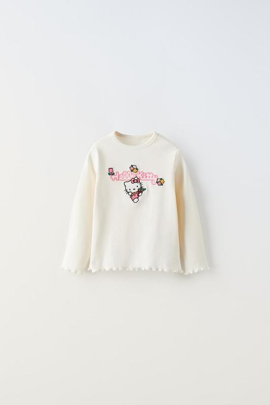 Кофточка с круглым воротником и длинными рукавами. Вышивка © HELLO KITTY спереди и волнистые края. Размер: 2 года ( 92) -длина 36 см, ширина 25.5 см, длина рукава от горловины 39 см