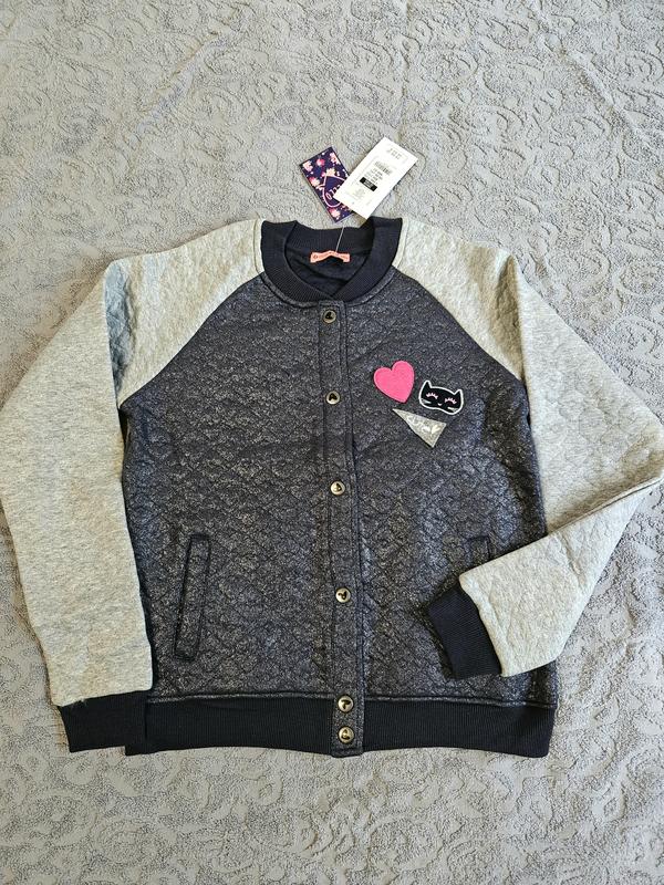 Бомбер на кнопках COOL CLAB 164, 170 На рост примерно 158+/-, 162+/-, на стройную девушку. Двойной трикотаж. Перед, спинка ткань с люрексом наружная. Стильный. замер 164: Длина 57 см Ширина 45.5 см Длина рукава от горловины 65см+4см манжет 375грн/шт