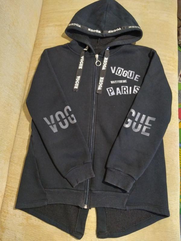 Кофта тепла на дівчинку р. 152, у гарному стані, рукав від плеча 49, рукав від горловини 60, плечі 41, довжина 57 спереду, ширина 45. Пересилка Укрпоштою накладеним платежем