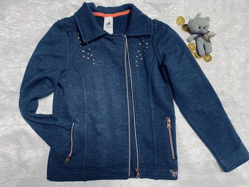 Трикотажный пиджачок из плотного трикотажа, удобный и теплый. Для нас был идеальным вариантом в школу. В идеальном состоянии. 60% коттон, 40% полиэстер.