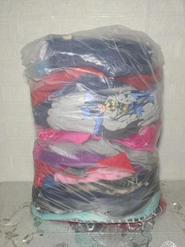 В связи с переездом распродаю остатки товара. В продаже 30 шт, в мешке 35 шт (на случай дефекта, который я не заметила, чтоб дефект просто выбросить;) Одежда без явных дефектов, но требует стирки! На возраст примерно от года до 12. Только верх, байки, кофты, мальчик, девочка. В наличии несколько таких мешков