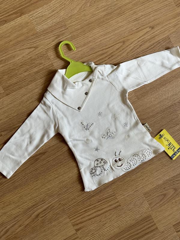 Кофточка на осенний зимний период для девочки молочного цвета, со стразами и аппликациями. Подойдет на детёныш ~86см ростом.