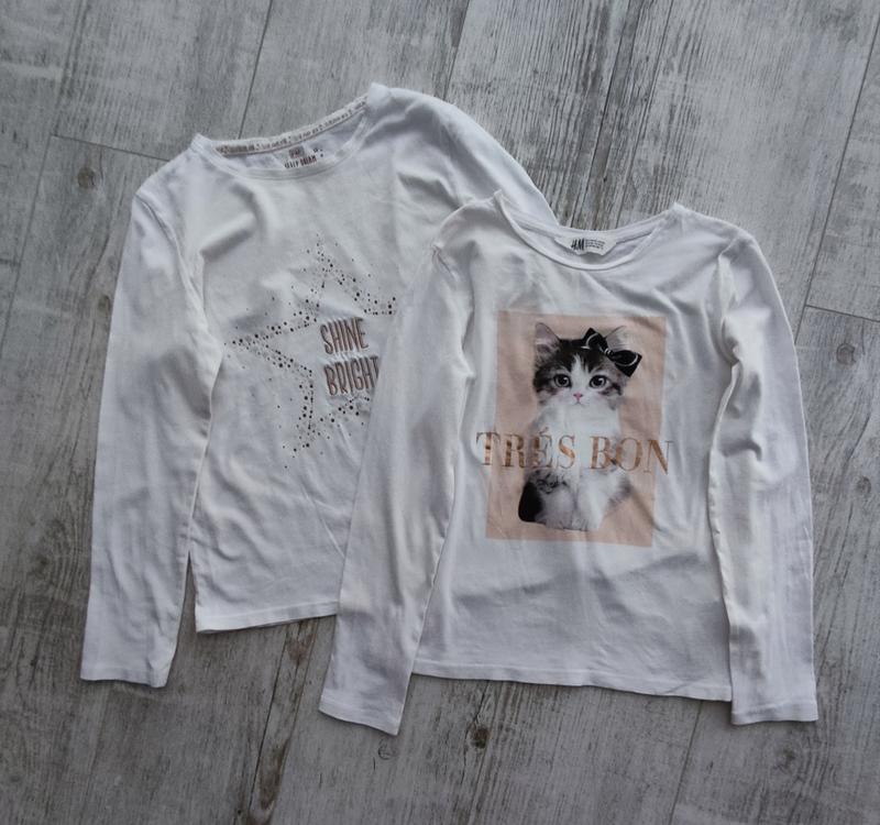 Котоновые лонгсливы H&M и F&F в идеальном состоянии. Размер на возраст 8-10 лет. Цена за 2 вещи. "Котик" плечи 32см под руками 36см рукав 48см длина 48см "Звезда" плечи 34см под руками 41см рукав 50см длина 51см Дополнительные фото и замеры по необходимости. БЕЗОПАСНАЯ ОПЛАТА лишь УКРПОТКА
