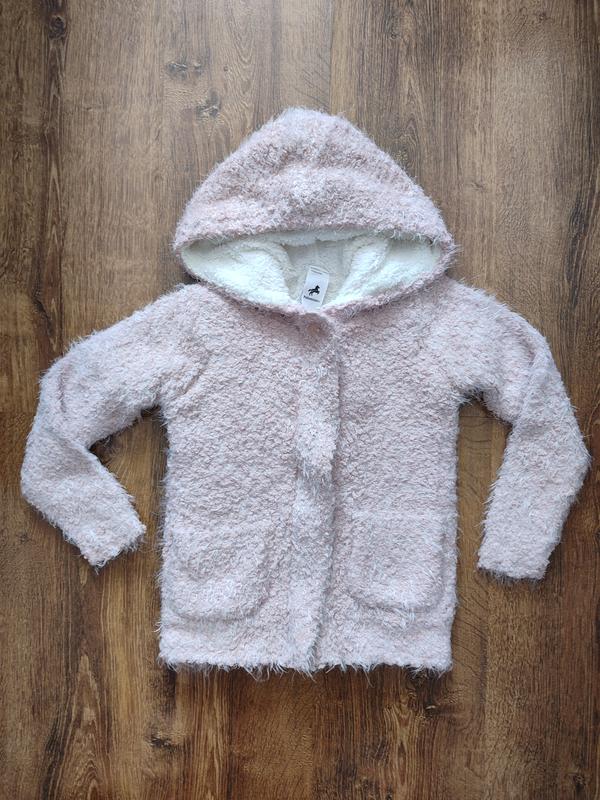 Крутезная качественная тёплая пушиста кофточка на девочку 4-5 лет. Невероятно мягкая, качественная и милая. Цвет нежный беж, внутри белая. Бренд Palomino. Нова.