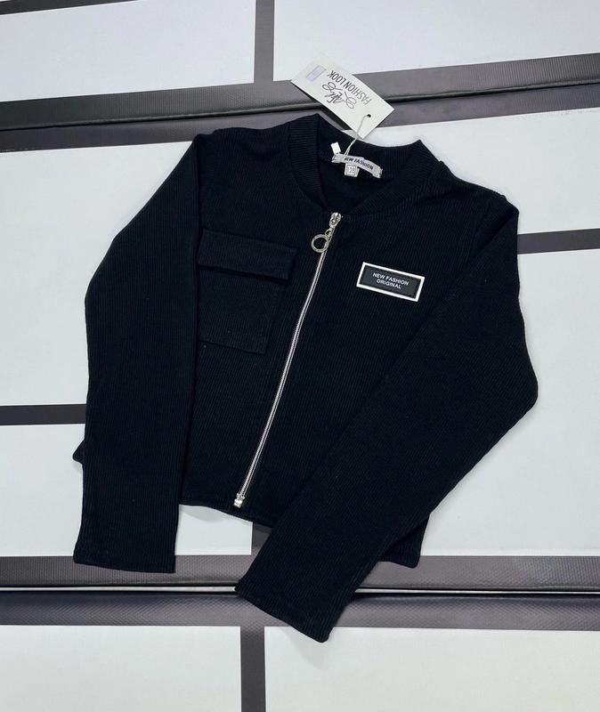 Кофточка для модницы Тканина трикотаж в рубчик На молнии Украшено нашивкой Есть карман КАЧЕСТВО ЧУДОВА!! РЕКОМЕНДУЮ!!! 128-1шт 140-1шт Длина/пог/рукав 128-37/34/43 140-41/39/47