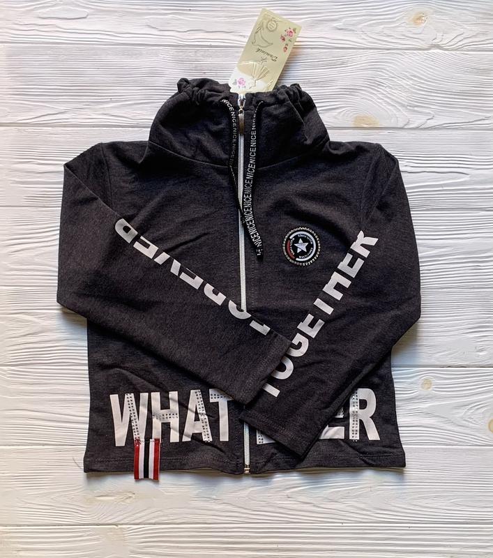 Спортивна кофта на змійці для дівчинки Розмір 116 см Довжина 41 см, ширина 36 см Довжина рукава від шийки 49 см Склад: 95% бавовна 5% еластан Виробник: Туреччина