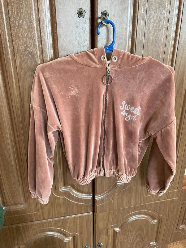 Кофта Вильветова з капішоном Довжина 45 Рукав від шиї 59 на резинці Груди 52 тягнеться З низу також на резинці тягнеться Ціна: 199 грн