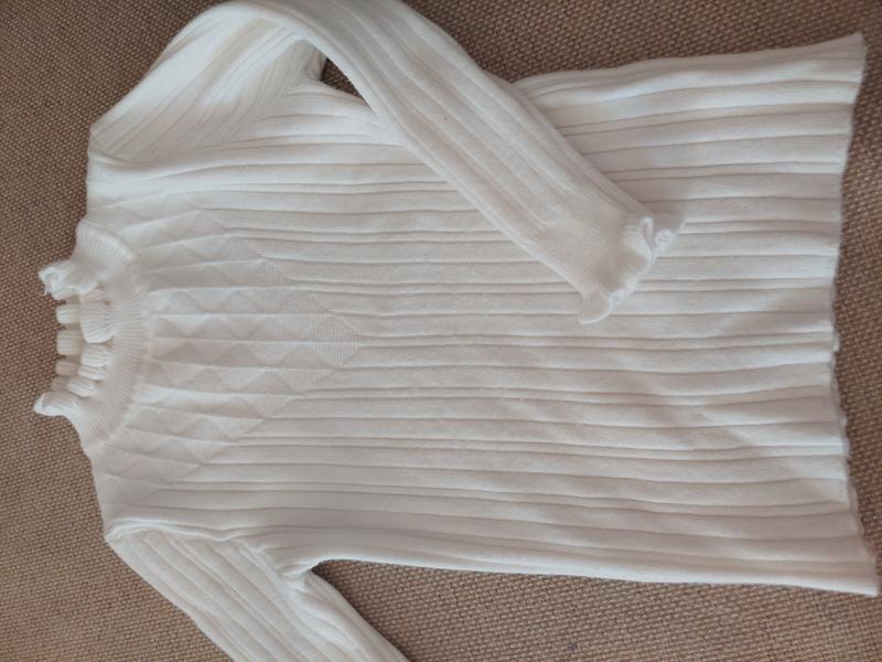 Красивый Белый гольф очень приятный к телу, красивая смотрится на ребенке. теплый,ткань тянется. идеальное состояние. длина-42,ширина-28,рукав-38