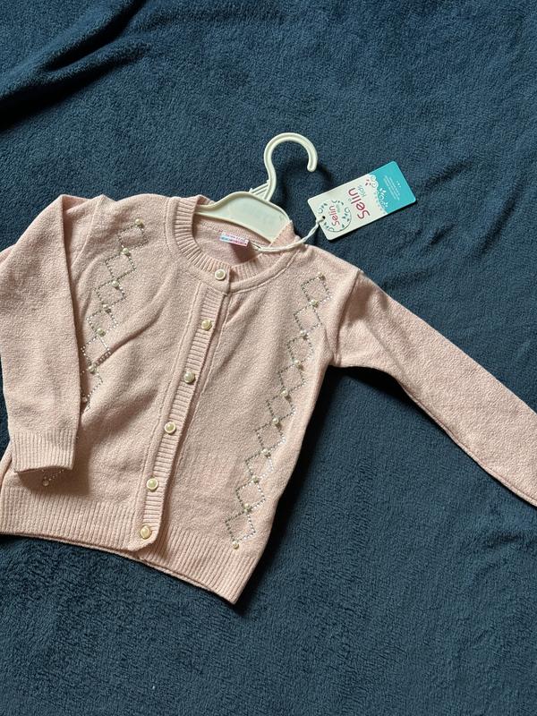 Рожева кофточка з перлинками, стразиками та ґудзиками) В наявності один розмір: 92-98см (2-3роки) Склад: 85% акрил та 15% лайкра Виробник Турція
