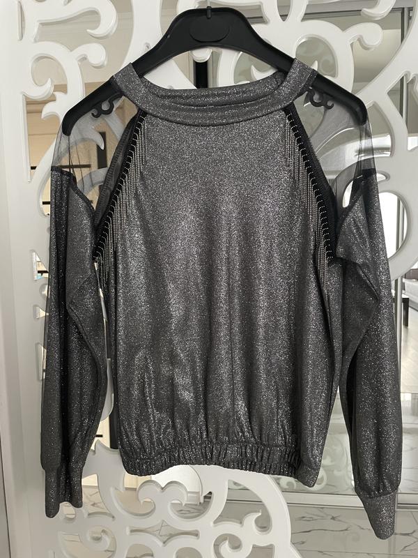 Святкова кофтинка для дівчинки у відмінному стані. Стан нової. Блискітки не осипаються, бо вони під фатіном. Дуже ефектно виглядає. Стрейч. На ріст - 140 см Довжина по спинці - 45 см Плечі опущені, тому довжина рукава від горловини - 54 см ПОГ - 38 см(тягнеться)
