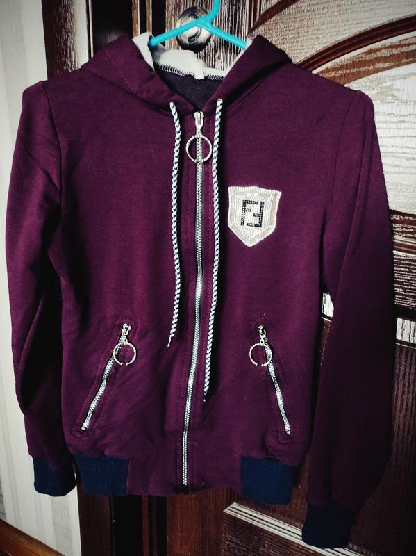 Спортивна кофта для дівчинки-підлітка, сливового кольору, оброблена стразами, не розтягнута, без дірок та потертостей, у хорошому стані, розмір 40-42. Подарунок за бажанням до будь якої виставленної речи.