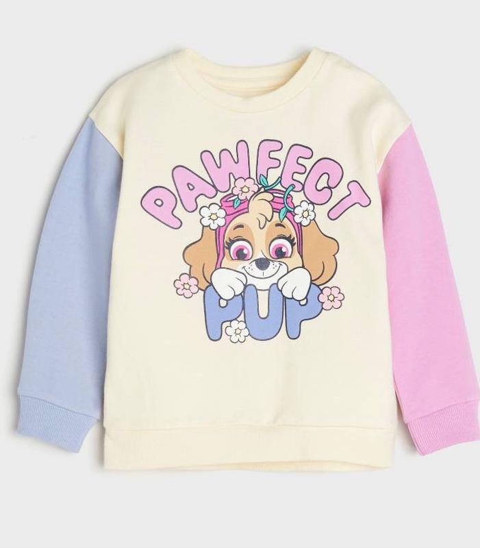 Свитшот для девочки, декоративный принт спереди, длинный рукавчик, застежка на кнопка, 100% хлопок. Цвет - кремовый. Размер - 86.