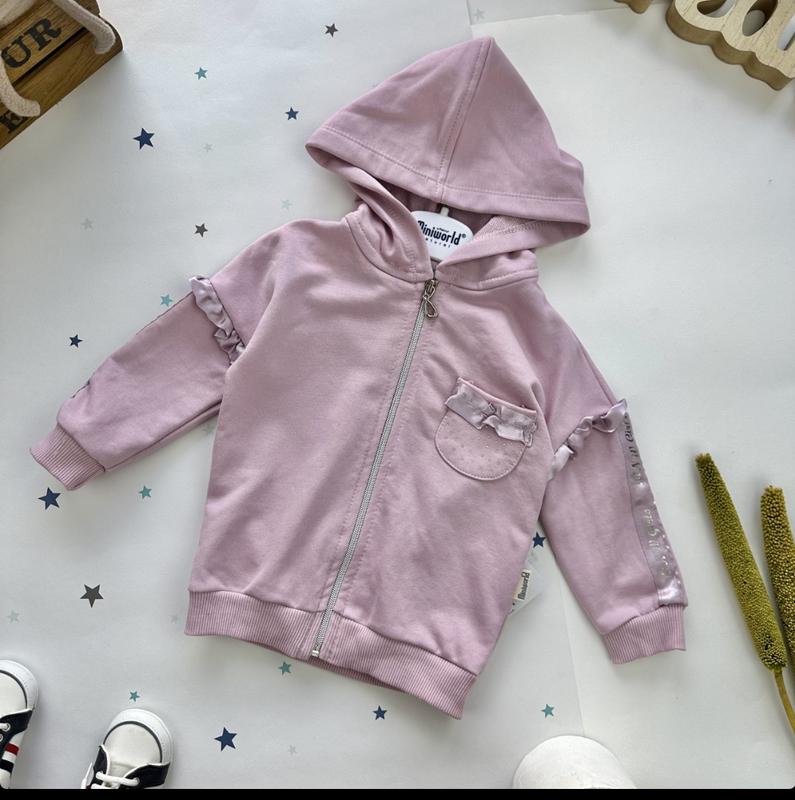 Кофта на молнии производства Турция. Качество- люкс. Тканина- двонитка петля. Снизу и на рукавах- манжетах. Украшен атласными рюшами и стразами. Размеры: 98-по набору 3 – рукав 34/ длина 40 104- по бірці 4 – 36/43 110- по бірці 5 – 38/45 116- по бірці 6 – 39/47 Цена: 560 грн КрохпельКа