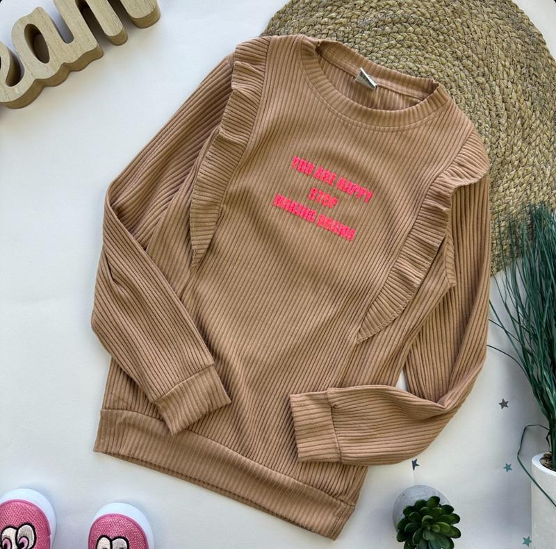 Реглан производства Турция! Тканина- двонитка ( рубчик) . Прикрашено спереду рюшами. Отличное качество! Рисунок - накат. Размеры: 134 – рукав 47, длина 49 140 – 47/ 50 146 – 48/ 51 152 – 52/ 54 Цена: 555 грн КрохпельКа