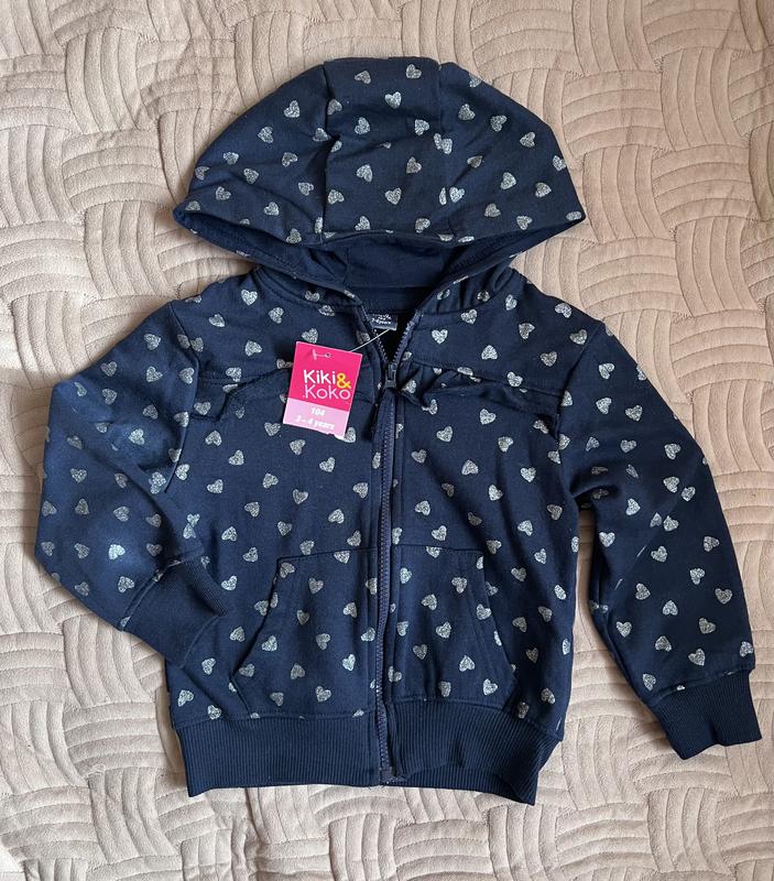 Разгружая шкаф своей дочурки, на странице есть новые вещи и в идеальном состоянии. Новая спортивная кофта бренда Kiki&Koko, размер 104. Цвет чуточку насыщеннее чем на фото, сердечка с серебряным напылением, тёплая. Ответим на все дополнительные вопросы в привод)