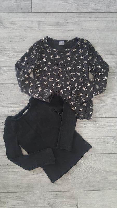 Просьба через кнопку КУПИТЬ оформлять после договоренности ❤ Лонгслив реглан кофта в рубчик Next. Графитовый цвет в мелкий цветочек. Длинный рукав, небольшой круглый вырез горловины. Ткань в рубчик, хорошо тянется. В идеале, на 2-3 года, можно и больше.Цена105-Продана Черный лонгслив F&F в рубчик. Сильно маломерит. Будет на 2-3-4.Цена92 Набором дешевле.