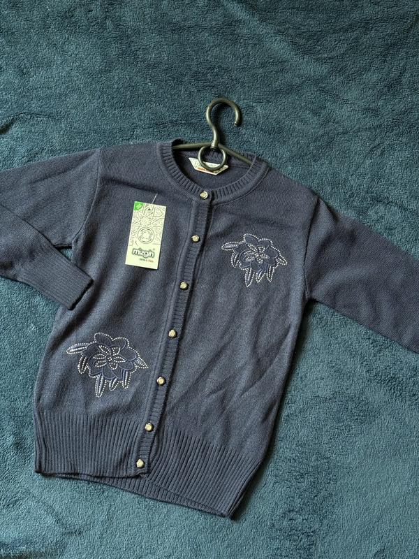 Синяя кофточка с шерстью в составе! 30% шерсть, 70% акрил. Теплая, не кусается. Новая! Размер один в наличии: 9-10 лет Замеры: Длина рукава 46,5см Длина кофты 52см Ширина по спине под руками 37см