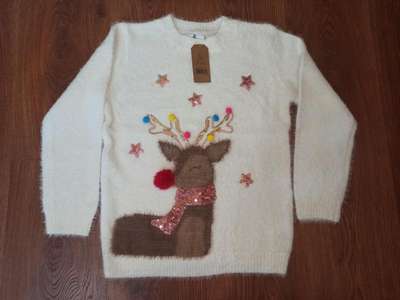свитер есть в двух размерах размер 128-135: длина 53 см,ширина 39 см, рукав 45 см от плеча, 56 см от горловины размер 140-146: длина 54 см, ширина 43 см, рукав 52 см от плеча, 64 см от горловины цена 450 грн и 500 грн соответственно