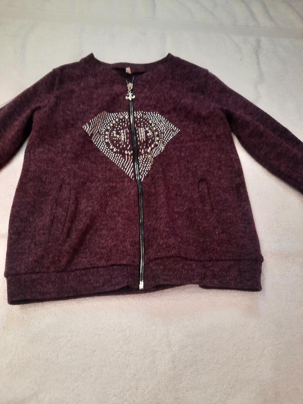 Кофточка для девочки.Очень теплая и приятная к телу.На лампасах есть потертости,та и основном кофта в очень хорошем состоянии.Пойдёт на возраст 9-10 лет