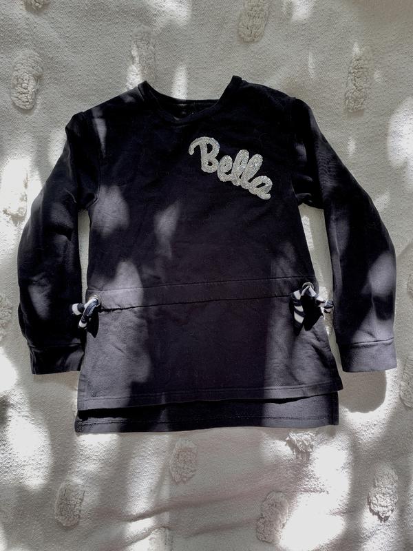 Утепленная кофта с декоративными завязками и надписью из серебристых пайеток.