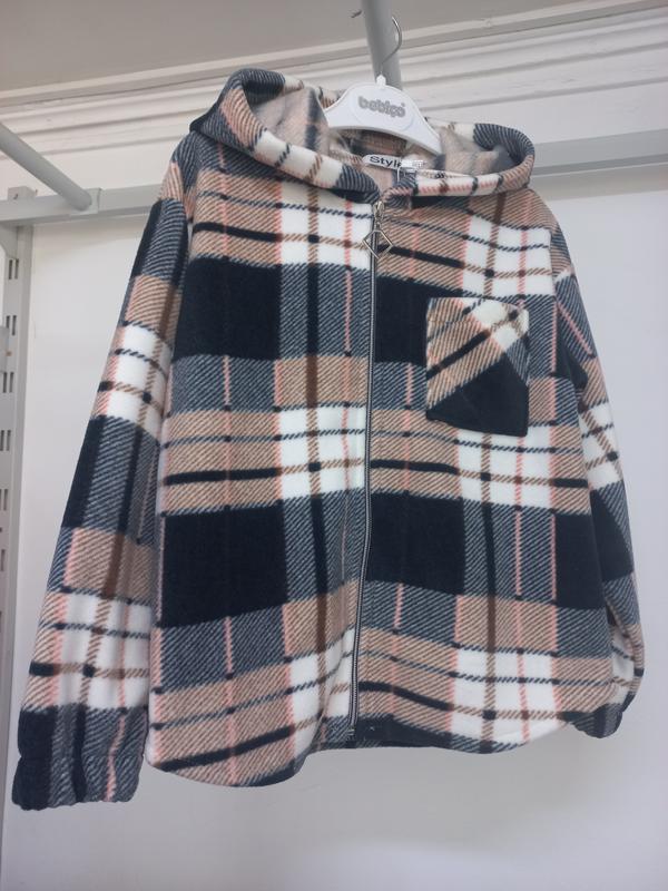 Тепленькая флисовая кофточка на замочке с капишоном. Качество супер. Ширина 41, длина 47, длина рукава от горла 53 (плече приспущено)