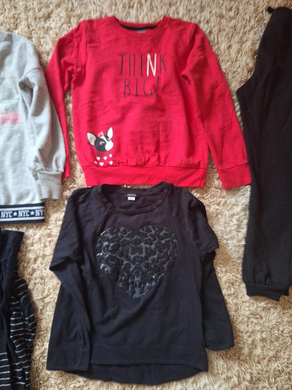 Пакет вещей для девочки р.134-140. 8 позиций. Джинси, Черные теплые спортивные штаны, легенди, теплый красный кофта, серая кофта, черная кофта 2 шт. колготки.