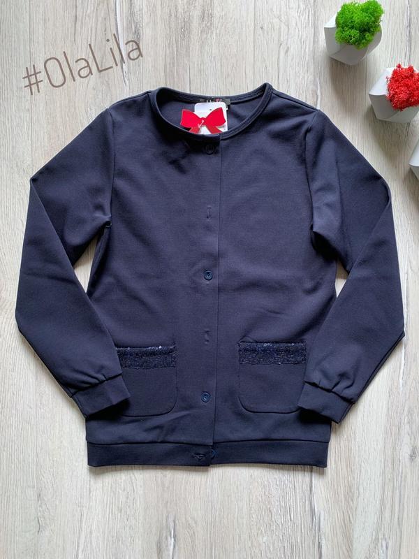 Жакет для дівчинки ТМ Mevis трикотаж гарної якості, не образує катишок в наявності синій колір 146 р довжина рукава 54 см, плечі 33 см, пог 41 см, довжина по спинці 56 см Доставка Нова пошта і Укрпошта
