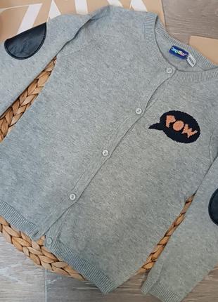 Трикотажная кофточка на девочку на рост 98-104см в идеальном состоянии с декором на локтях сзади. замеры: длина 41, рукав 35, плечи 25, пог31, резинка 27,