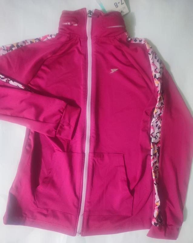 Матеріал 86% поліестер, 14% еластан. Колір малиновий. Заміри на ріст 128 см (7-8 років): довжина 52 см, довжина рукава від горловини 53 см, півобхват по грудях 35 см. Заміри на ріст 140-146 см ( 10-11 років): довжина 54 см, довжина рукава від горловини 61 см, півобхват по грудях 41 см .