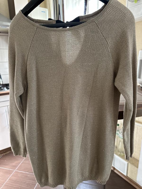 Кофта с люрексом ( отдает немного золотом), удлиненный, на спинке бантик, в хорошем состоянии, размер М.