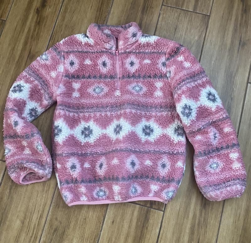 Низ и рукава на резинке, очень теплая кофточка, есть потертости на рукавах