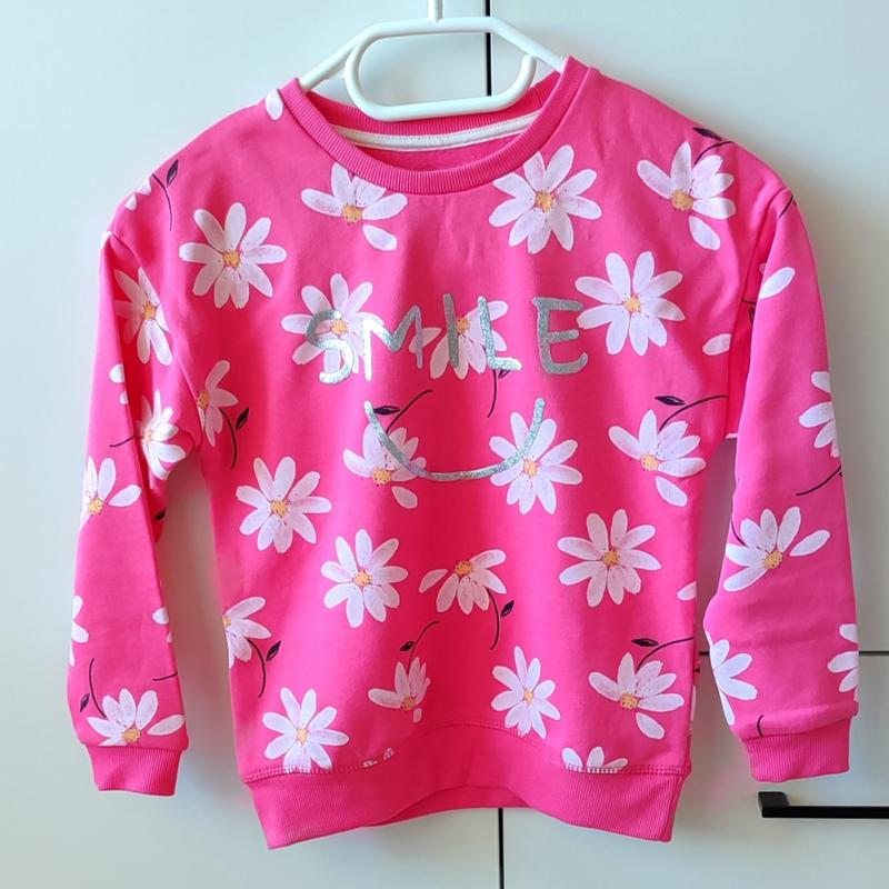 Яскрава кофтинка з написом "Smile",ідеально підійде до лосіни та джинсів.Не кошлатиться та не втрачає колір після прання.Вживу ще гарніша,є реальні відгуки покупців.Primark 122 р.