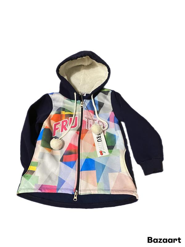 🧸Тепла кофтинка для дівчаток. 🧸З капюшоном ( не знімається, утеплений). 🧸З кишенями. 🧸На змійці. 🧸Колір: темно-синій. 🧸Розмір: 5 (110 см.) 🧸Довжина рукава від плеча: 37 (см.)